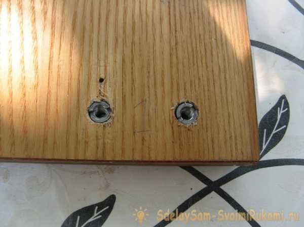 Вкручиваем гайки. В ДСП они идут туже, чем в дерево.