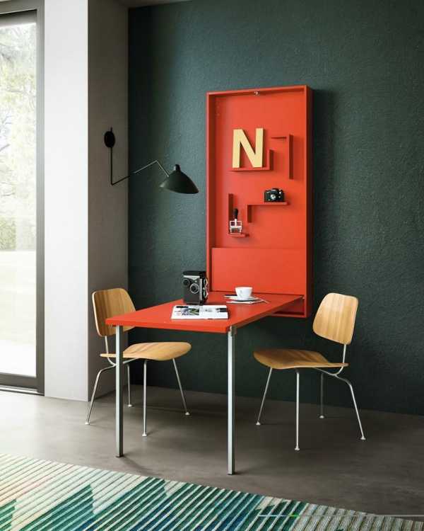 Идея, которая никогда не теряет актуальности и знакома большинству с детства. Ноу хау в том, чтобы повнимательнее присмотреться к разнообразию современных моделей столов, К вашим услугам и стеклянные раздвижные столы, кажущиеся воздушными в любом интерьере, и минималистичные модели, которые в сложенном состоянии займут не больше 20 см.