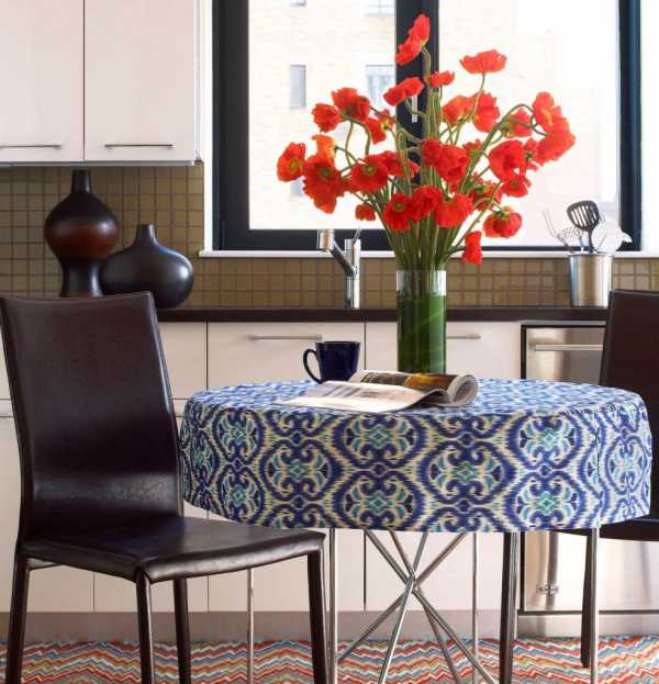 Полезный совет: для того, чтобы визуализировать, как ваш кухонный стол впишется в помещение, можно взять простыню или скатерть, которая соответствует размерам стола и разместить в той позиции, где вы планируете поставить стол.