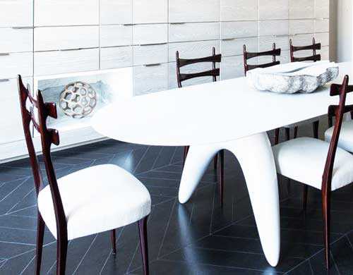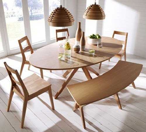 Овальный столик позволит Вам использовать такой забытый, но снова входящий в моду, предмет мебели, как скамья. Это очень стильно, функционально и удобно.
