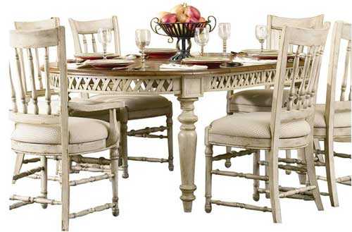 Овальный обеденный стол от Hooker Furniture. Стоимость – 2300$. Стол в стиле кантри. Украшен ручной росписью. Сделан из вишни.