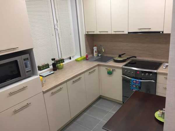 - место у окна свободно, там можно расположить дополнительную рабочую зону, продлив подоконник.