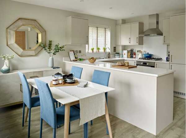 Светлая и уютная кухня с раскладным столом простой трансформации конструкции, увеличивающей обеденное место