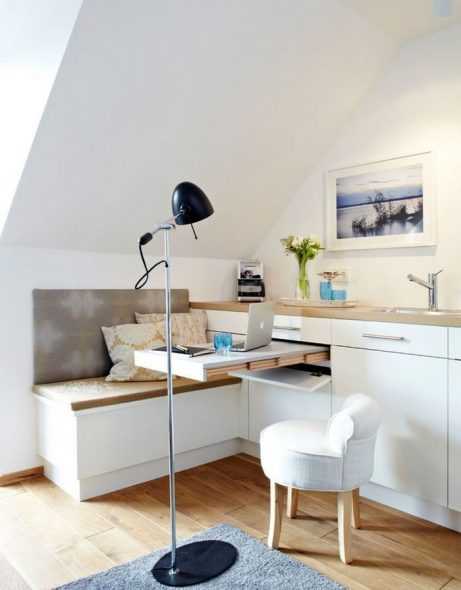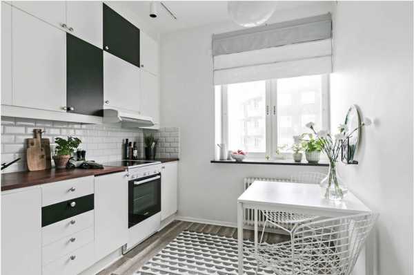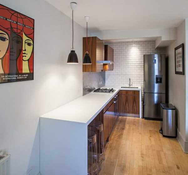 Еще один пример – прямоугольный столик вдоль узкой длинной кухни. Такое размещение характерно для традиционного дизайна столовой, но не менее практично и для маленькой кухни.