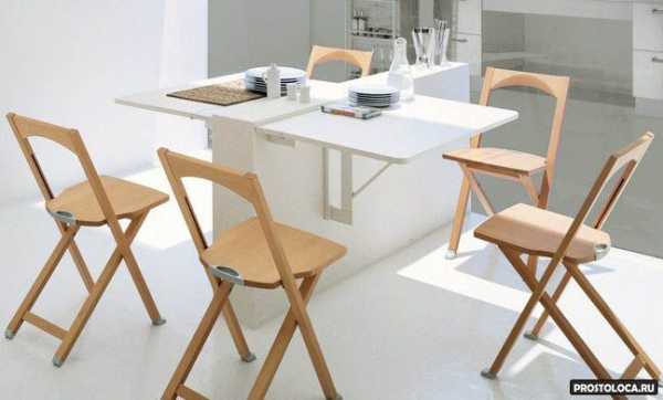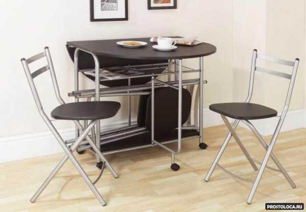 Последний нюанс самый важный. Здесь у вас есть выбор. Вы можете подобрать складные стулья или подходящие по размеру и прячущиеся под столешницу. Складные изделия можно убирать в другую комнату, на балкон или в специальный ящик – в некоторых современных моделях он предусмотрен непосредственно под столом.