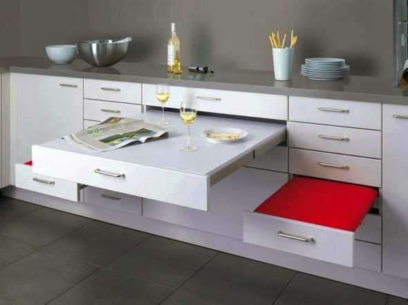 Выдвижные столы в интерьере кухни – 50 фото-идей: