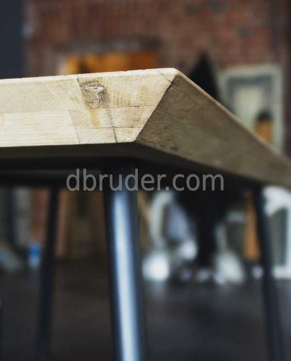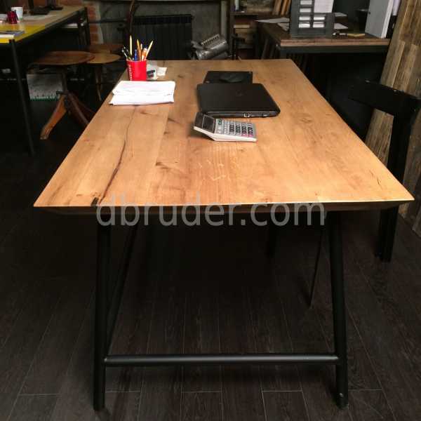 И еще один вариант стола, на этот раз обеденного. Крепкая металлическая основа здесь прекрасно сочетается с натуральным деревом. При желании, можно покрасить доски под цвет ножек. Главное, что бы мебель идеально вписывалась в интерьер.