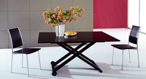Хочется упомянуть еще одно замечательное дизайнерское изобретение для маленьких гостиных. Это сочетание в одной конструкции журнального и обеденного стола. Я и сама давно присматриваюсь к такому, только вот цена, на мой взгляд, в наших магазинах на них слишком завышенная. Хотя есть вполне достойные варианты в интернет-магазинах, например тут, причем по ценам в 2-3 раза ниже, чем в обычных магазинах.