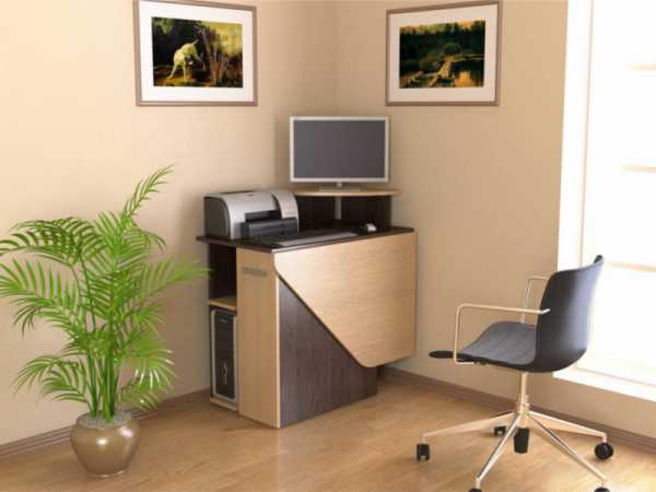 Рабочая зона с компьютерным столом в углу гостинойМодельный ряд компьютерных столов для интерьера гостиной