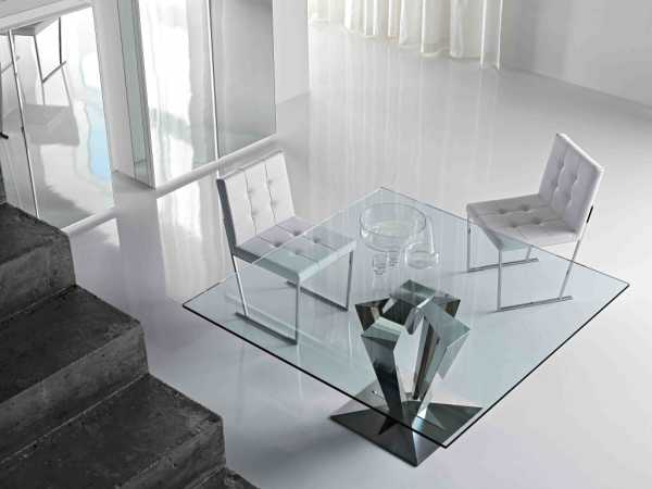 Стол из стекла пропускает свет, делает пространство визуально больше.