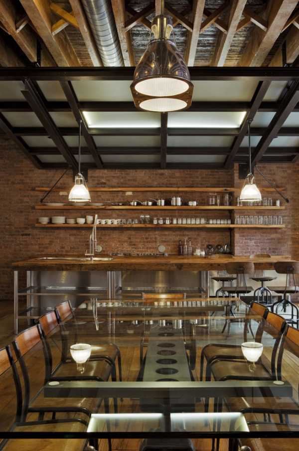 Красивый кухонный стол из цельного куска дерева выглядит очень стильно
