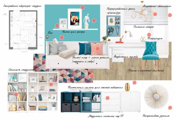 Именно на этапе концепции появилась идея акцентной бирюзовой стены. Забегая вперёд, могу сказать, что стену я уже покрасила и очень довольна результатом. Вот за такие нестандартные идеи я и ценю работу с дизайнером, не уверена, что придумала бы такой ход сама.