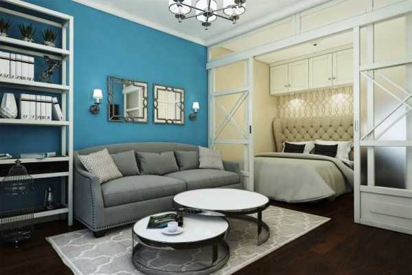 Чтобы визуально расширить пространство, используют большое настенное зеркало, минимум мебели, светлые обои. Очень хорошо, если квартира имеет утепленный балкон, лоджию. При объединении с основным помещением они дадут дополнительные два-четыре метра, которые используются для организации места отдыха, рабочего мини-кабинета. Для расширения кухни «забирают» кусочек прихожей, гостиная совмещается со спальней, отделяясь от кухни узким откидным столиком, барной стойкой.