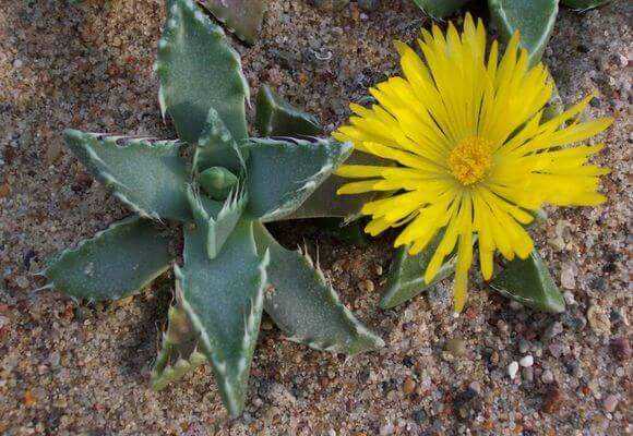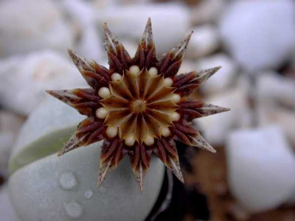 Очаровательный розеточный суккулент семейства Аизоновые, который проявил чудеса мимикрии – на листьях растения располагаются устрашающие выросты, напоминающие зубы хищника. Чтобы солнце не обжигало кожу, многие виды фаукарий приобрели медно-рыжую окраску, которая помогает слиться растениям с природным каменистым грунтом.