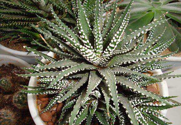 - Хавортия — отличительной особенностью являются шершавые листья, покрытые бородавчатыми наростами.