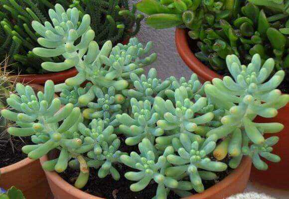- Очитки — оригинальное суккулентное растение с хрупкими, легко обламывающимися побегами и листьями.
