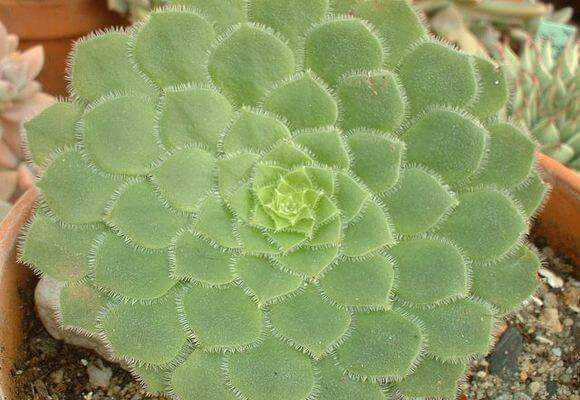 Удивительной красоты суккулент, поражающий точной природной симметрией расположения листьев. В средние века растение наделяли способностью отводить молнии, поэтому ковры из молодила высаживали на крышах городских домов.