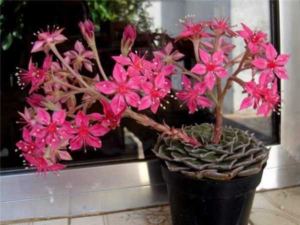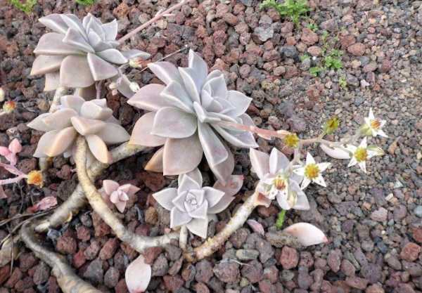 - Эониум — вид экзотический, название рода в переводе с греческого языка означает «живущий вечно».