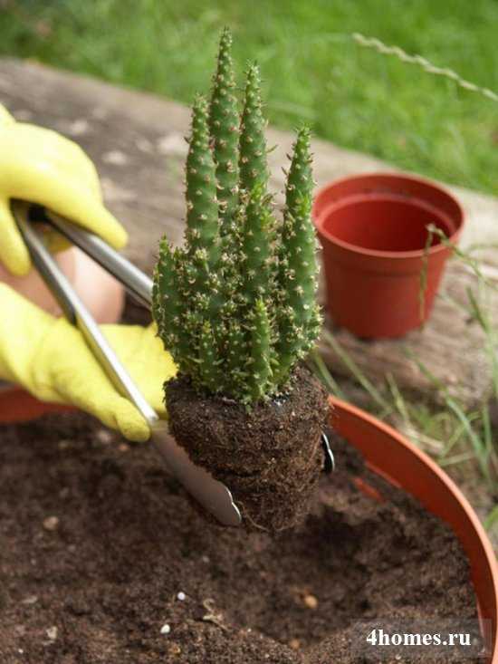 Горшок подбирают по размеру суккулента. Крупным толстянкам, молочаям подойдут широкие горшки из глины. А мелкие хавортии, алоэ лучше всего сажать в маленькие горшки из пластика. Если цветок вырастет, то весной перевалите его в более крупный по объему горшок.