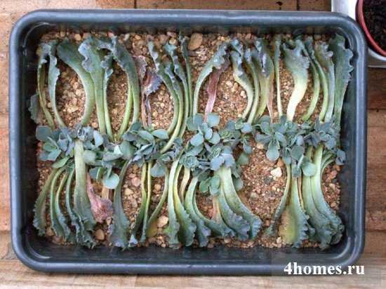 Черенки очень просто укоренять. Весной либо летом срежьте стебли, листья. Пусть они подсохнут некоторое время, если черенки крупные, то дайте им подсохнуть за 1—2 недели. Затем посадите их в смесь для суккулентов. Поливают их нечасто, не стоит их прикрывать пленкой либо стеклом.