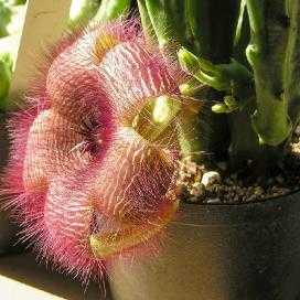 - Дювалия — это маленькое растение с длиной округлых либо овальных стеблей до 6 см. Цветы коричневато-алого оттенка, бывают почти черные.