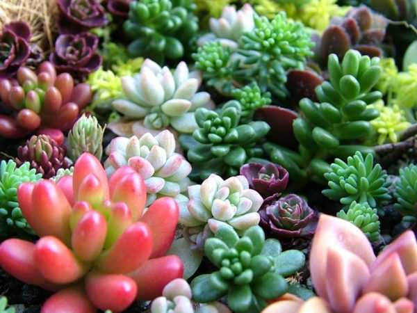 Многообразие видов суккулентов позволяет создавать из этих растений эффектные композиции, высаживая разные экземпляры с расстоянием в 3-5 см в одной плошке. Ковровые композиции из суккулентов могут украсить подоконник, сады патио и солнечные участки в саду.