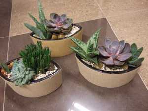 Поверхность земли посыпают песком или гравием. При этом нужно знать, что высота плошки не превышает 1\3 высоты самого большого растения. К примеру, можно создать композицию из хавортии, гастерии, экеверии, литопсов, кактуса. К ним можно подсадить пахифитум, который имеет толстые, голубоватые округлые листья, напоминающие виноградины. Также можно дополнить компанию небольшими растениями с ползучими стеблями, с краев плошки будут интересно свисать их побеги. Для этого эффекта берутся седумы, монантес, толстянка плауновидная.