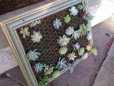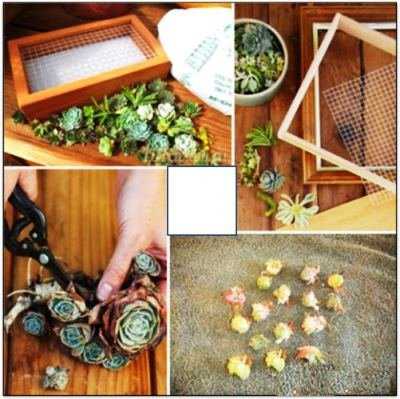 - Старайтесь заполнить раму так плотно, насколько позволяет размер ячеек сети, ведь суккуленты растут медленно.
