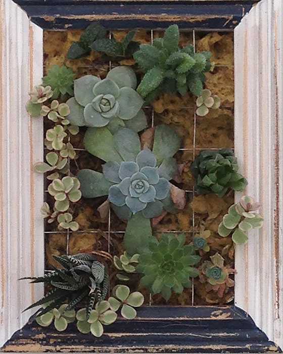 - Рамка – рамка с углублением даст вам достаточно места для укладки почвы и посадки суккулентов. Чтобы определить, какой размер рамки подойдет, подумайте о том, где вы хотите повесить свой сад.