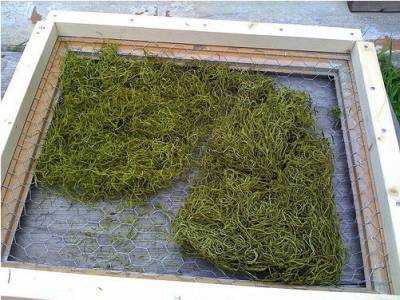- Пока рама сохнет, готовят растения: нарезают черенки с длинным хвостиком, чтобы легче было вставлять в ячейки сетки.