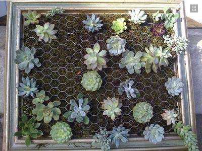 Основой для фитокартин являются рамы, металлические сетки и фанера, которые скрепляют в один удерживающий каркас. Его заполняют грунтом и высаживают в ячейки растения так, чтобы создать определенный рисунок.