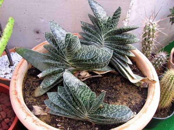 Гастерия (Gasteria) – в переводе с латинского название растения означает – «пузатый сосуд» и таким образом подчеркивает внешний облик венчиков суккулентов, происходящих из Южной Африки. Всего насчитывают до 70 видов, представляющих собой розеточные экземпляры с 2-4 или 10-12 листками.