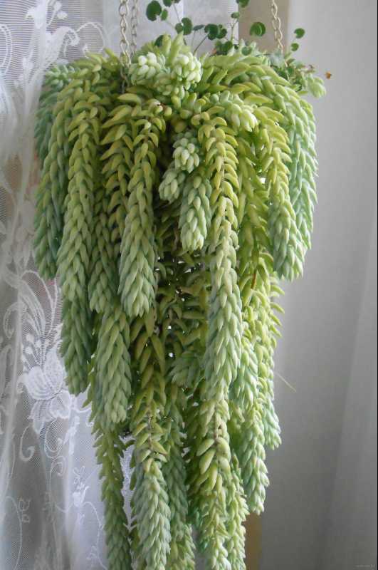 - Очиток Моргана, семейство Толстянковых – ампельный суккулент с толстыми стеблями и густо разросшимися мясистыми листьями.