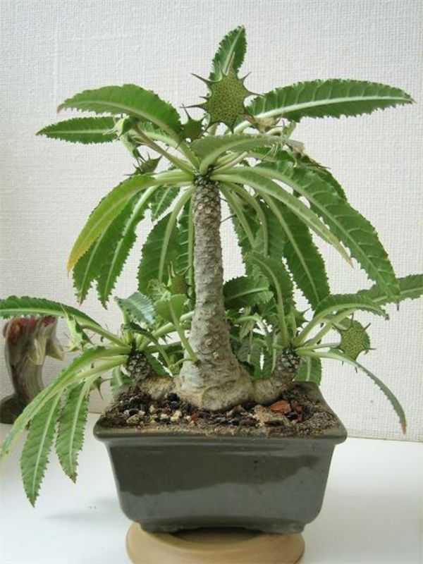 Пахиподиум (Pachypodium) – толстоствольные деревья и кустарники, создающие значительный запас влаги на время засухи. Они выглядят по-разному, и размеры имеют от карликовых малюток, напоминающих бутылку, до кустарников с бутылочнообразными пагонами и кактусовидных деревьев.