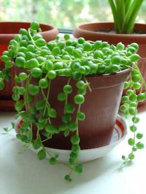 - Для выращивания в подвесных вазонах очень хорошо подойдет Крестовник Роулли. Это необычное растение со свисающими стеблями и листьями, имеющими форму горошины.