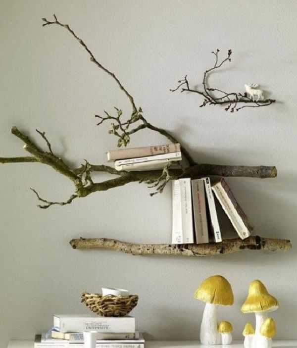 Полки для книг, подсвечники, держатели, букеты – это не весь перечень того, как можно использовать сухие ветки в интерьере. Все ограничивается только вашей фантазией. Что уж там говорить, лучше слов все скажут только фотографии. Смотрите и любуйтесь.