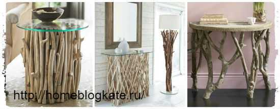 Особенно меня покорили столики, за основу которых взяты ветки. Вот чем поистине можно удивить гостей и близких.