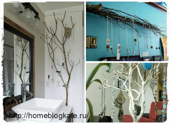 Даже самые простые ветки могут выполнять полезные функции. Как на счет хранения на них бижутерии и других украшений или использовать толстые и крепкие сучки в качестве крючков для одежды.