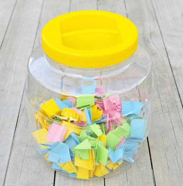 Просто наполните ее маленькими цветными бумажками. На каждой из них необходимо написать теплые слова или качества человека. От этого будет зависеть основная надпись на стеклянной таре. Например: «1000 причин, почему я тебя люблю!» или «101 ласковое слово для тебя, родная!» Вариантов масса, просто сядьте и хорошо подумайте.Кстати, на дно можно положить коробочку с колечком. Получится неплохой вариант для предложения. Или спрячьте билеты на важный матч любимой команды своего возлюбленного. Вот увидите, сколько эмоций и восторга будет от простой банки.