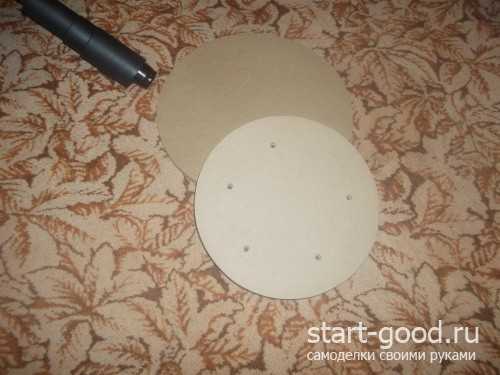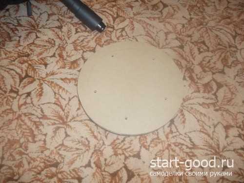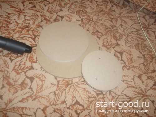 Дальше прикручиваем круг побольше, также сверлим отверстия под саморезы.