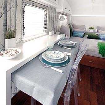 Этот выдвижной стол для крошечной кухни представляет собой интерьер с «завтраком у окна». Для таких сложных интерьеров мебель надо выбирать особенно тщательно.