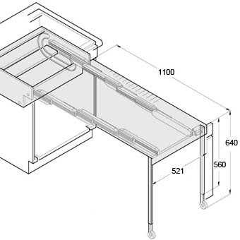 Столик выдвижной телескопический предназначен для тумб шириной от 450-900 мм. Это прочный и надежный механизм на основе толстостенной металлоконструкции. Сам столик скрыт за фасадом и выдвигается только по мере надобности. Прекрасно экономит пространство и очень удобен в использовании.