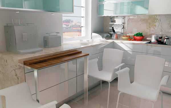Особенной популярностью пользуются такие конструкции на кухнях в гостинках или, так называемых, квартирах-студиях.