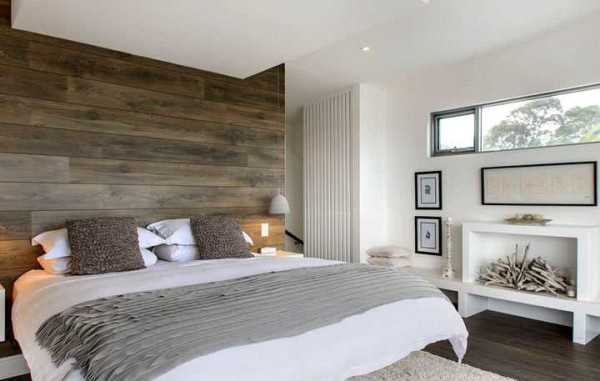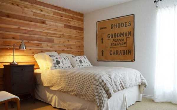 - В спальне можно применить доски с природным цветом дерева. Сероватые стены отлично подойдут для создания стиля “кантри”;