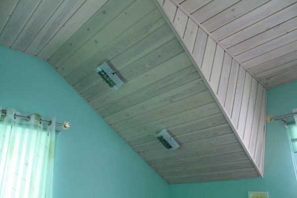 Выбеленная вагонка отлично смотрится и на стенах, и на потолке