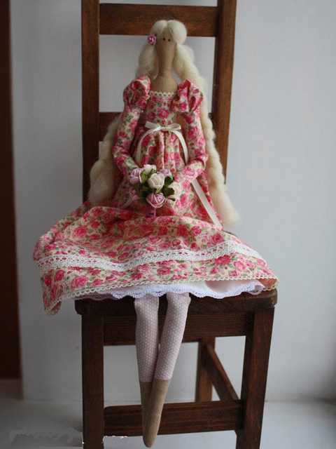 Приступая к созданию игрушек в стиле прованс или шебби шик, можно не стесняться использовать готовые идеи опытных рукодельниц. Работа, несомненно, кропотливая, новичкам в процессе пригодится поэтапный мастер класс, а наградой за труды станет шикарная тильда в роскошном дизайнерском наряде.