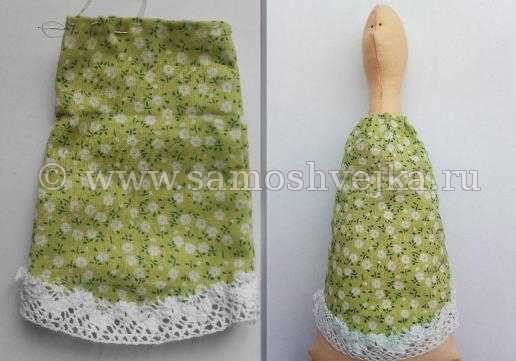 Заготовка готова, а теперь ее нужно принарядить. Чтобы пошить красивое платье, можно воспользоваться одним из способов: