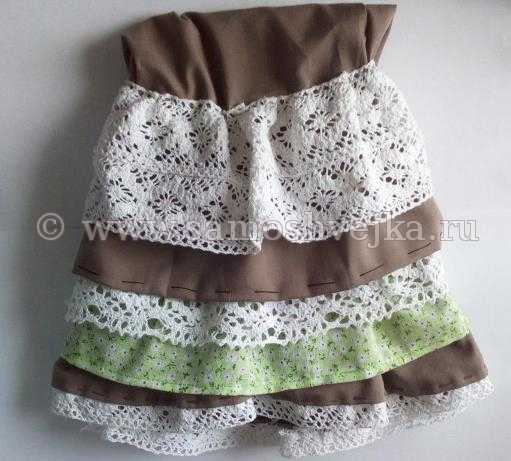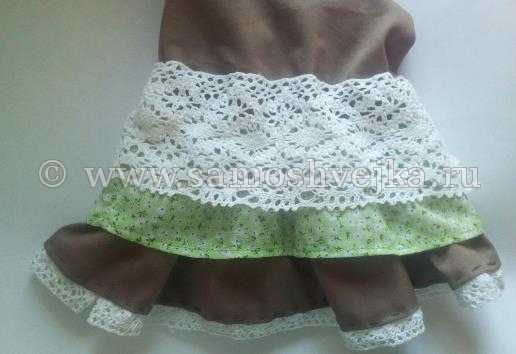 Работать можно по выкройкам из интернета. Придётся только уменьшить схему до нужного размера. Сделать пышную юбку с несколькими ярусами вовсе проще простого. Даже выкройки не надо. На подъюбник нашейте несколько рюш и все. При этом можно использовать остатки лоскутков любой ткани, в том числе кружево и фатин.