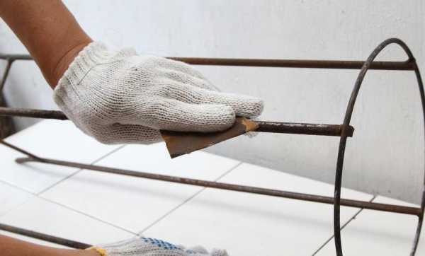 Шаг первый – подготовка основания. Для изготовления напольного светильника необходимо подобрать подходящую структуру для каркаса. В нашем случае используем ретро торшер, который уже полвека пылится на чердаке. Сделать каркас можно так же из деревянных планок. Удаляем остатки ткани, различные винты и прочие ненужные части, полностью оголяя каркас. С помощью шкурки удаляем ржавчину.