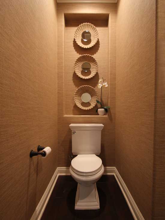 Несмотря на убеждения многих, что в маленьком туалете не место украшениям, они тут все же могут комфортно разместиться. Главное, соизмерять масштаб и знать меру, поэтому в туалете может найтись место небольшому цветку, картине, фотографиям с пейзажами и т.д.